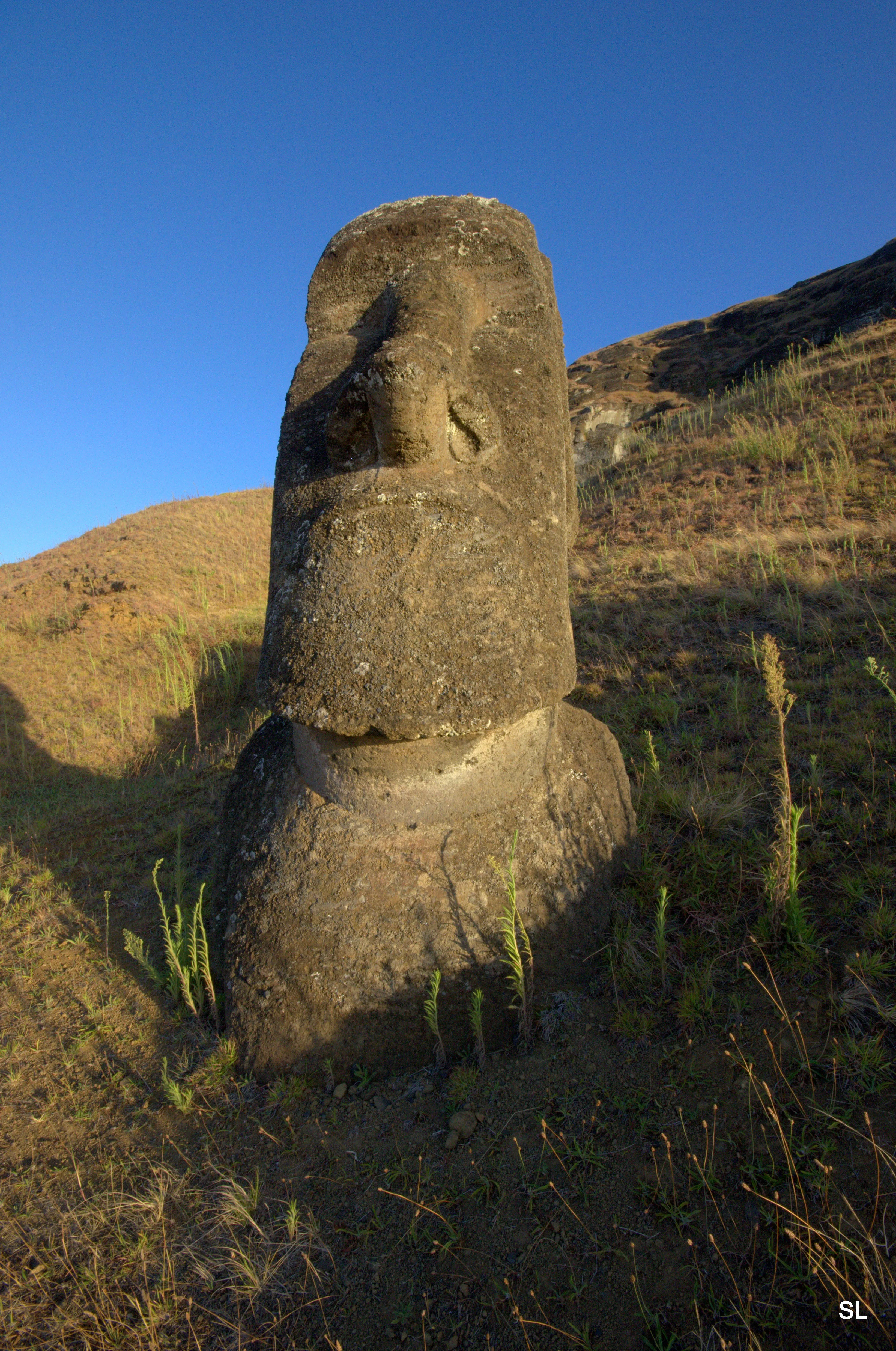 Она же поможет найти ответ и на главный вопрос, мучающий поколения ученых: как перемещали аборигены истуканов? Ответ: никак)) Страдать такой глупостью - вырубать и таскать по горам и долам неподъемных истуканов могут только ученые. Они сделаны на месте. Формовались твердеющей смесью с вулканическим туфом в составе в ямах на склонах гор в легких формах, грунт отбрасывался. Всего навсего.