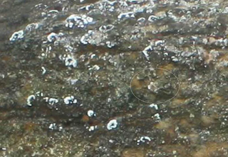 А тут обратите внимание на признак усыхания формованной смеси, выпятившего наружу находящиеся близ поверхности бутовые или сухие комки.