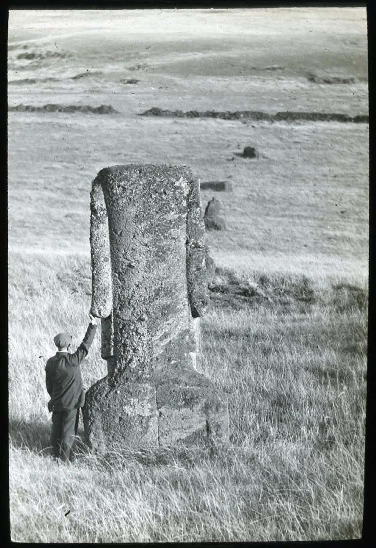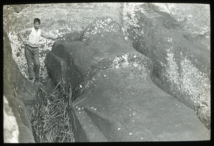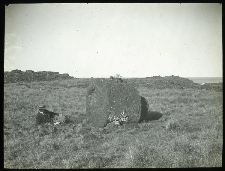 Обратите внимание: при Томсоне в 1886-89 годах этот моаи был только в проекте; в реале его развернули в другую сторону.