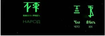 - «КОЛОкрыж», языческая уточка Гамаюн вместо христианского голубя, а над центральным входом изображён не Христос, а ДаждьБог сын Бога Перуна, о чём свидетельствует буквы: «Да» и «Бъ».