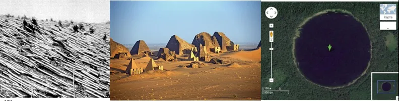 Плотины осуществляли поворот рек в ту или иную сторону, а для их создания было перемещено более квадриллиона кубов земли». Центр картографии США заявил, что «возраст карты 120 миллионов лет. Подобная трехмерная карта имеет навигационное значение и может быть составлена исключительно аэрокосмической съемкой. Это требует супермощных компьютеров и фотографий с “шаттлов“. На территории Китая в провинции Шэньси найден комплекс гигантских пирамид «Китая» высотой в 300 м. Пирамиды строились не китайцами 12 тыс. лет, когда «китайская» цивилизация ещё не существовала. Находятся они на древнй территории Расии см. ниже. Такие же пирамиды есть на Дальнем Востоке, в Японском море, Атлантическом океане. В манускриптах Майя и Египта сказано, что все пирамиды построены белыми Богами, с голубыми глазами пришедшими с сеВера и направлены на Сакральный Центр Мира, к пирамиде Меру, которая находится на Северном полюсе. Глобальные катастрофы на земле были следствием борьбы Светлых Богов с тёмными силами.