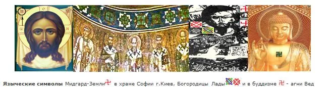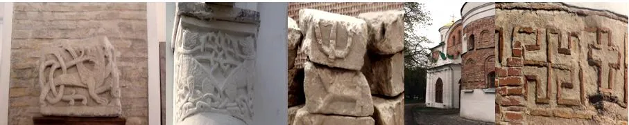 Во времена основателя русского монашества и Киево-Печерской Лавры, святого Антония (+1073 г.), вера была более правильной чем сегодня потому, что чем ближе к сегодняшнему дню, тем меньше свидетельств-первоисточников утраченных из-за разрушений временем, стихиями и войнами. К сожалению все письменные источники о том времени дошли до нас в уже переписанном и отредактированном виде. Такая же ситуация и с архитектурными сооружениями. Большинство храмов таких как Киево-Печерская Лавра были либо уничтожены либо отреставрированы т.е. искажены духовенством. Но к счастью, чудом сохранились два храма X-XI в.в. в г. Чернигове, построенные при Антонии, который лично выкопал пещеры на Болдиной горе. Камни, росписи, кладка, сохранили то, что на них изображали изначально. И вот сюрприз, под побелкой храмов, забеленных попами, мы видим сложные орнаменты свастики, языческие символы, которые не имеют ничего общего с христианством. Так главным изображением Борисоглебского Собора есть не Христос, а Семаргл – сын Бога Сварога, древне-русские руны. Рядом Спасский Собор с