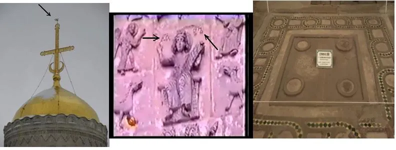 В Борисоглебском храме, есть Омфал якобы используемый в христианском богослужении. Но более это похоже на сложный механизм или на схему какого-то энергетического устройства. Славяне используют здесь старорусскую 4 и 16- ричную системы измерения, где единицей измерения есть Руна «сиг» . Отсюда русское слово «сигануть». Учёные были удивлены узнав, что 1 сиг. = 1/300 миллиардной доле сек. На современном языке это означает «телепортировать».