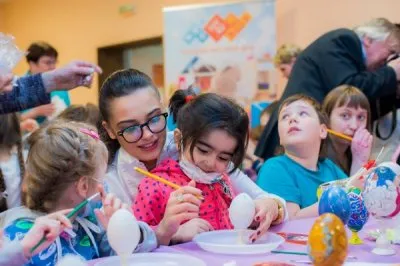 Самый светлый фестиваль в преддверии праздника прошел под девизом: «Пасха – время добрых дел!» в Научно-исследовательском клиническом институте педиатрии имени академика Ю.Е. Вельтищева. Около 100 малышей приняли участие в художественном мастер-классе по росписи пасхальных деревянных яиц, а после украсили вкуснейшие пряники кондитерскими красками. Неожиданным сюрпризом для детей стало знакомство с известным художником и мастером своего дела Никасом Сафроновым и певицами – Шурой Кузнецовой из шоу «Голос» и Дианой Иваницкой (DIANNA). Никас Сафронов поделился с юными дарованиями своим опытом и вручил каждому маленькому пациенту по художественному набору. А Шура Кузнецова и Диана Иваницкая с радостью раскрасили яички вместе с малышами. Смешивая цвета и общаясь с гостями мероприятия, детишки получили заряд положительных эмоций и приблизились на шаг к выздоровлению. В середине праздника ребят развлек самый известный волшебник Москвы – иллюзионист Константин Пузанов. Дети с восхищением наблюдали за феерическим шоу и с удовольствием принимали участие в фокусах.